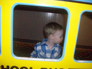 His favorite was the little slide and bubble popping game, but there were too many people and distractions for me to get a picture! We all had a good time and Nick won a lot of tickets and got Calvin some tootsie rolls and a plastic snake that he played with on the way home! I can't wait to take him again!